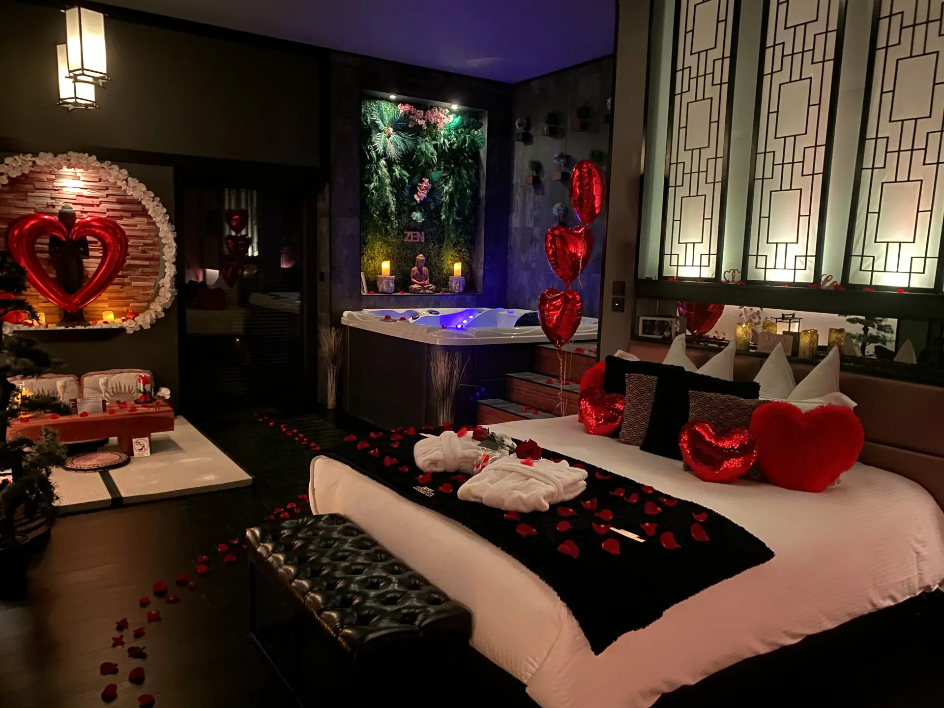 Chaque suite, japonaise ou orientale, renferme un mystère ou un trésor à découvrir, mêlant SPA XXL, douches à cascade, jeux de lumière, Escape Love ou chasse au trésor, et tout le confort inclus : literie, linge, petit-déjeuner, ménage.