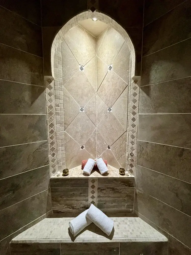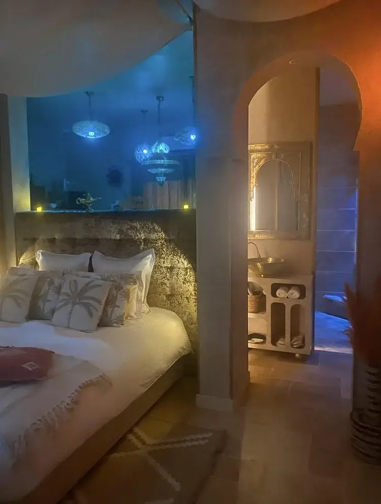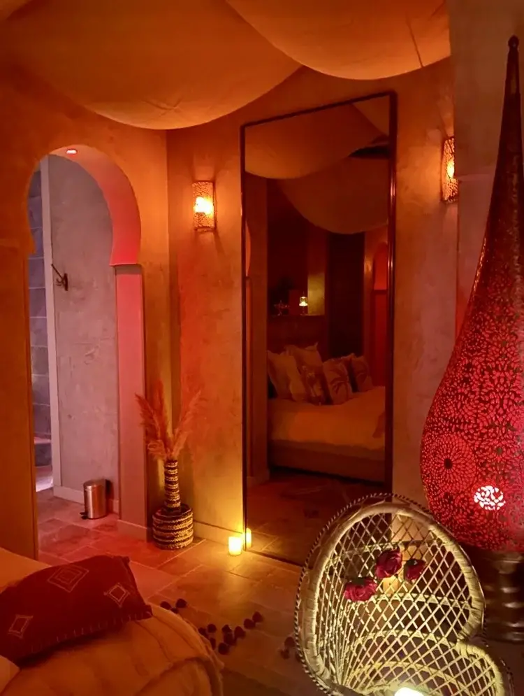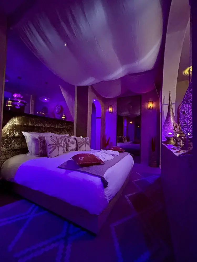 Inspirée des riads précieux et des tentes berbères baignées de lumière douce, cette love room est une invitation au voyage intérieur, à la reconnexion du couple et à l’éveil délicat du désir.