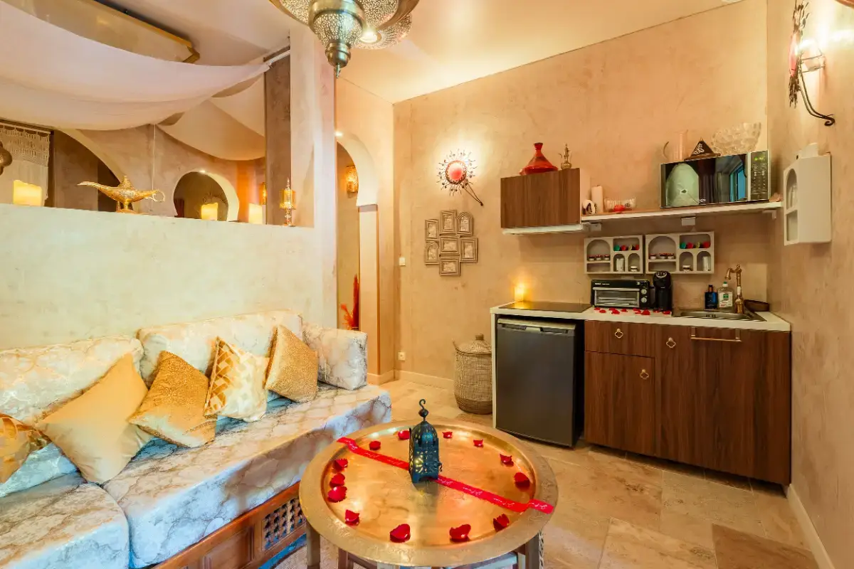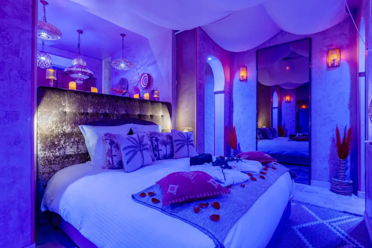 Inspirée des palais d’Orient, des riads secrets et des tentes nomades baignées de lumière douce, cette suite est une invitation au voyage intérieur, là où les regards s’attardent et où les silences deviennent complices...